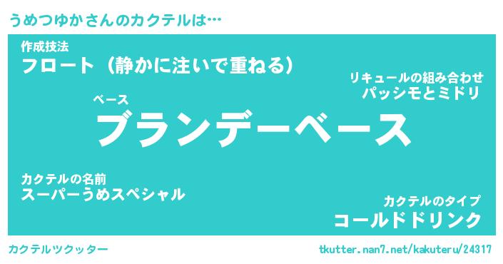 | ファンタジー風あだ名 | 『ウメフェル』『エターナルウメツユカー』 |