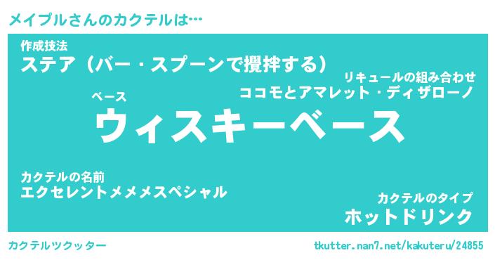 | 意味不明あだ名 | 『ペロリンメイプル』『永久保存メイプル』 |