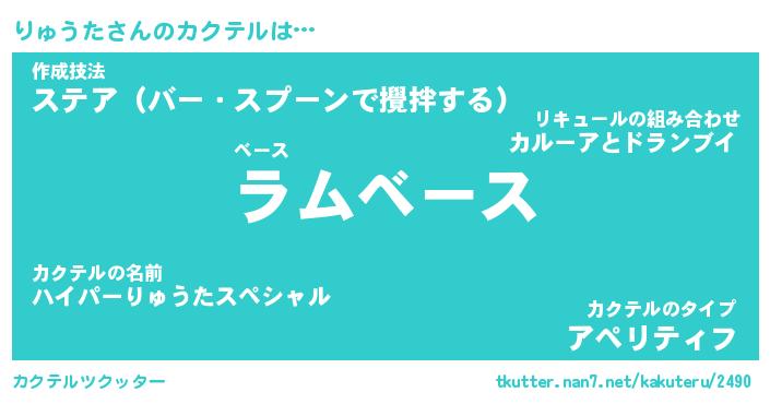 | ヒーロー風カッコイイあだ名 | 『スーパーリュウタ』『暗黒騎士リュ』 |