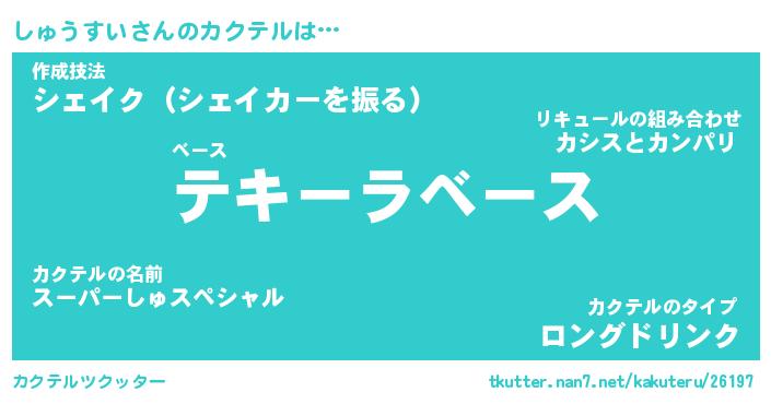 | ヒーロー風カッコイイあだ名 | 『スーパーシュウスイ』『天弓騎士シュ』 |