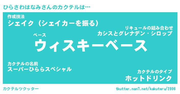 | ヒーロー風カッコイイあだ名 | 『スーパーヒラサワハナミ』 |