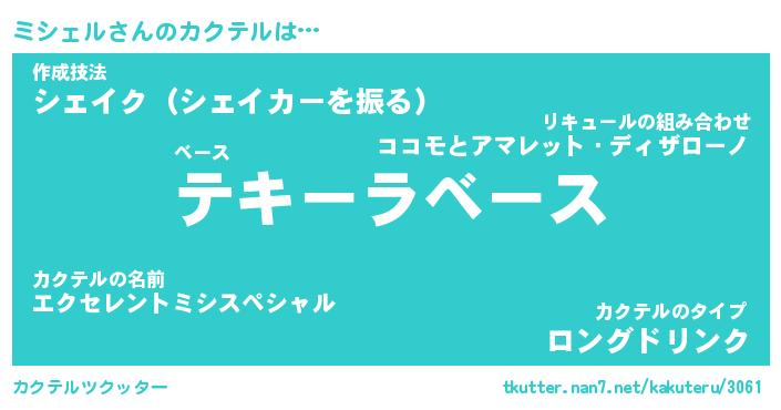 | ヒーロー風カッコイイあだ名 | 『スーパーミシェル』『天弓騎士ミシ』 |