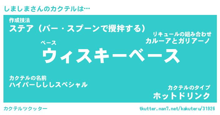 | 伝説のあだ名 | 『伝説のスナイパーしましま』 |