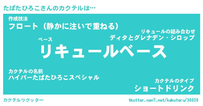 | ヒーロー風カッコイイあだ名 | 『スーパータバタヒロコ』『魔戒騎士タバ』 |