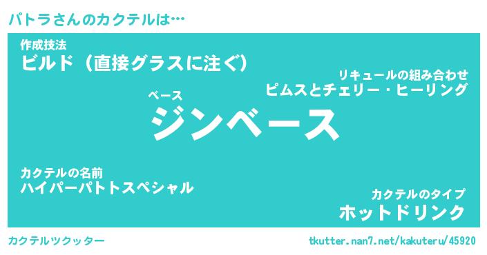| ヒーロー風カッコイイあだ名 | 『スーパーパトラ』『ウルトラパトラマン』 |