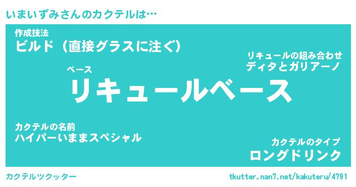| ヒーロー風カッコイイあだ名 | 『スーパーイマイズミ』『魔戒騎士イマ』 |