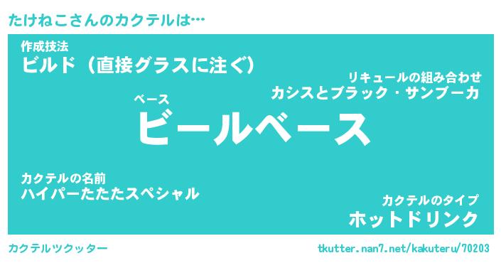 | ヒーロー風カッコイイあだ名 | 『スーパータケネコ』『炎刃騎士タケ』 |