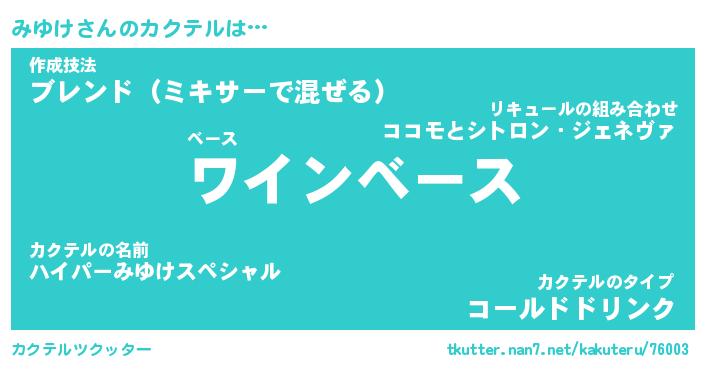 | ファンタジー風あだ名 | 『ミユフェル』『エターナルミユケー』 |