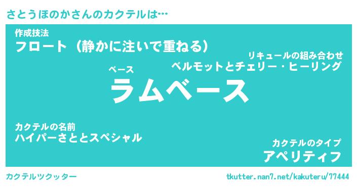 | ヒーロー風カッコイイあだ名 | 『スーパーサトウホノカ』『黄金騎士サト』 |