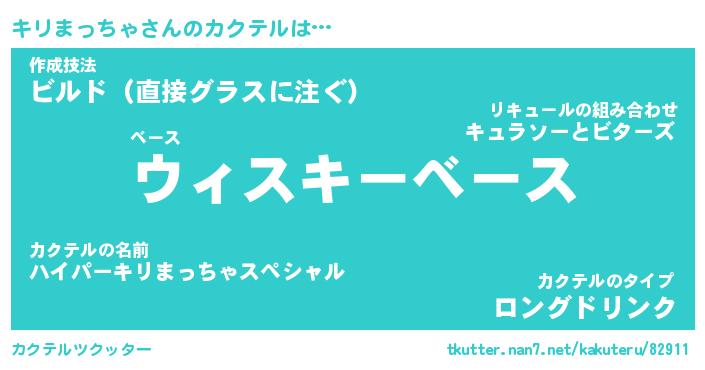 | ヒーロー風カッコイイあだ名 | 『スーパーキリマッチャ』『天弓騎士キリ』 |