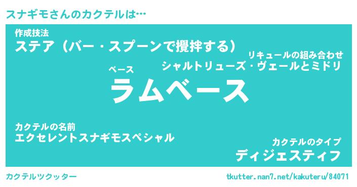 | 意味不明あだ名 | 『ペロリンスナギモ』『永久保存スナギモ』 |