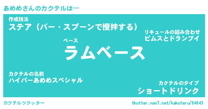 | ヒーロー風カッコイイあだ名 | 『スーパーアメメ』『ウルトラあめめマン』 |