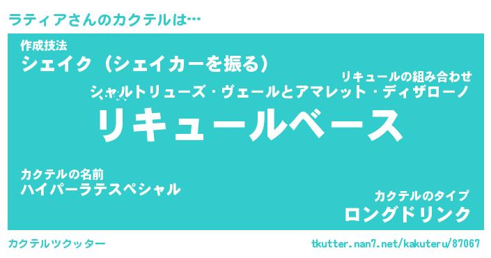 | ヒーロー風カッコイイあだ名 | 『スーパーラティア』『天弓騎士ラテ』 |