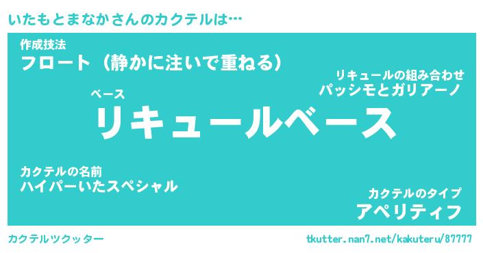 | ヒーロー風カッコイイあだ名 | 『スーパーイタモトマナカ』 |