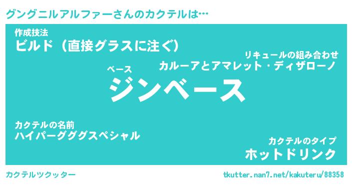| ヒーロー風カッコイイあだ名 | 『スーパーグングニルアルファー』 |