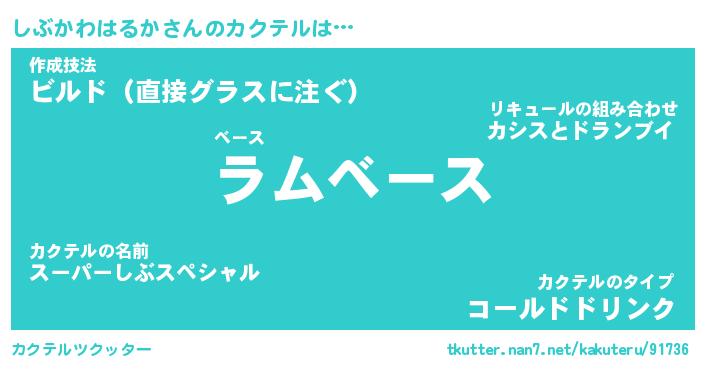 | ヒーロー風カッコイイあだ名 | 『スーパーシブカワハルカ』 |