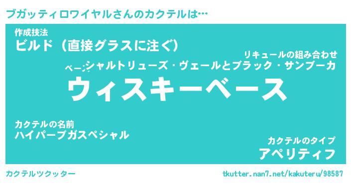 | 伝説のあだ名 | 『伝説のスナイパーブガッティロワイヤル』 |