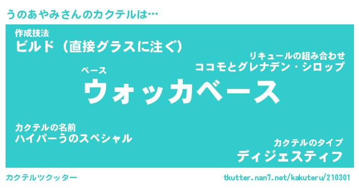| ファンタジー風あだ名 | 『ウノフェル』『エターナルウノアヤミー』 |