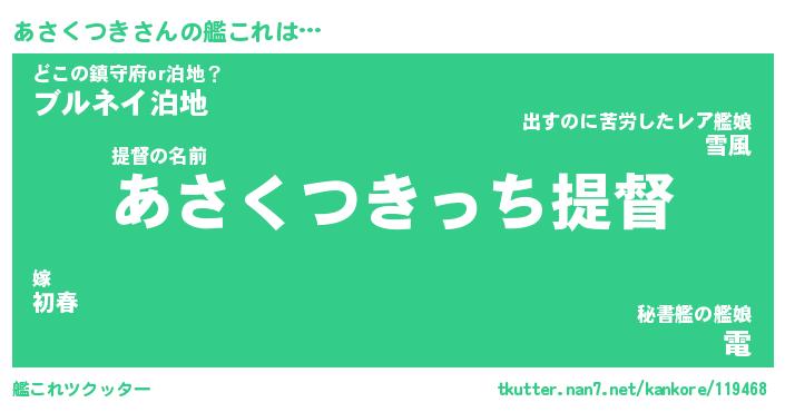 | 男性向けラノベタイトル風あだ名 | 『あさくつきの憂鬱』 |