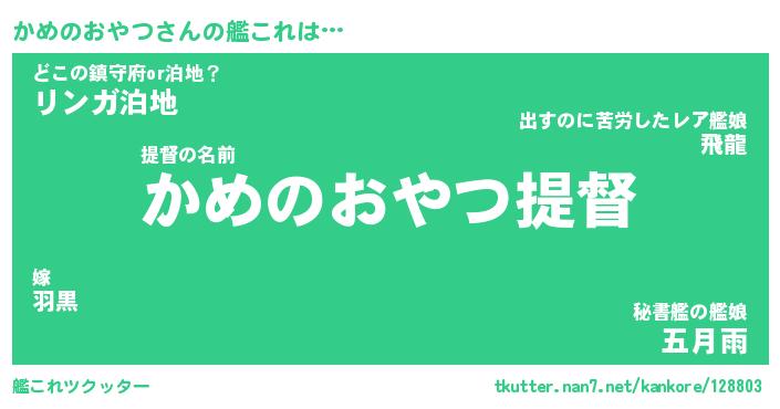 | 料理風あだ名 | 『節約★かめのおやつと油揚げの玉子丼』 |