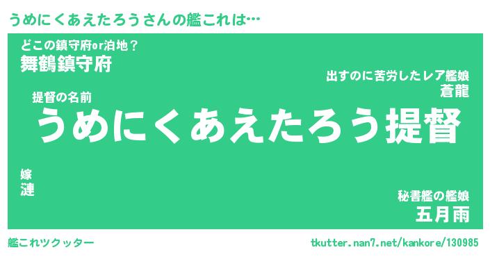 | 男性向けラノベタイトル風あだ名 | 『うめにくあえたろうの憂鬱』 |