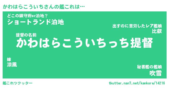 | 男性向けラノベタイトル風あだ名 | 『かわはらこういちの憂鬱』 |