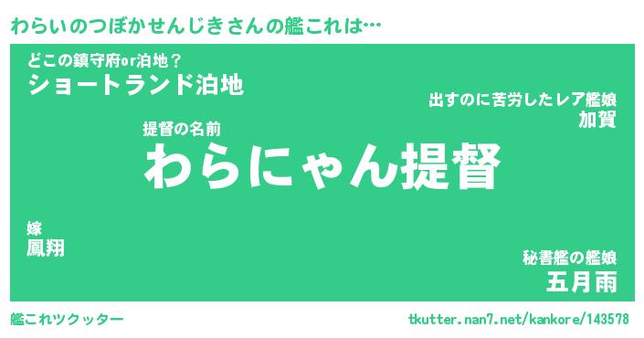 | ヘコむあだ名 | 『わらにー』『なまこ酢』『わらお』 |