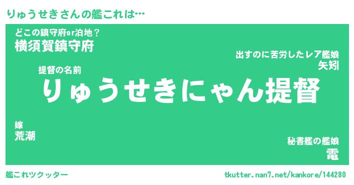 | 男性向けラノベタイトル風あだ名 | 『りゅうせきの憂鬱』 |