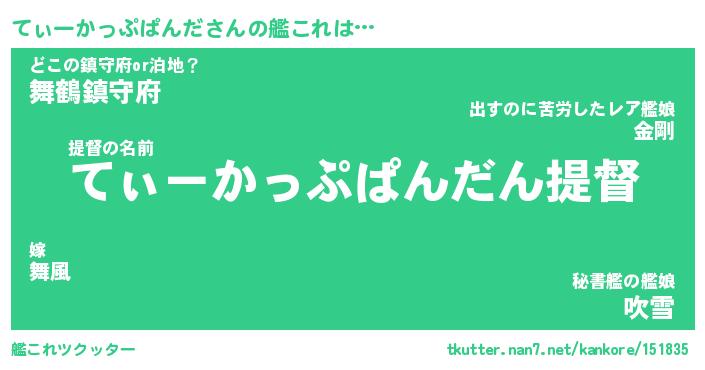 | 伝説のあだ名 | 『伝説のスナイパーてぃーかっぷぱんだ』 |