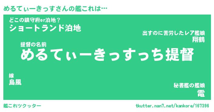 | 伝説のあだ名 | 『伝説のスナイパーめるてぃーきっす』 |