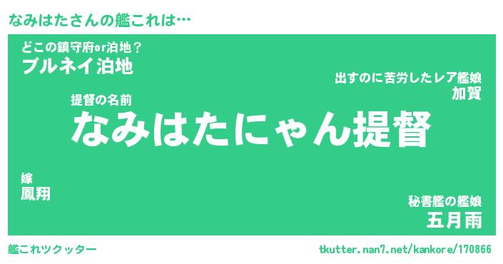 | ヒーロー風カッコイイあだ名 | 『スーパーナミハタ』『天弓騎士ナミ』 |