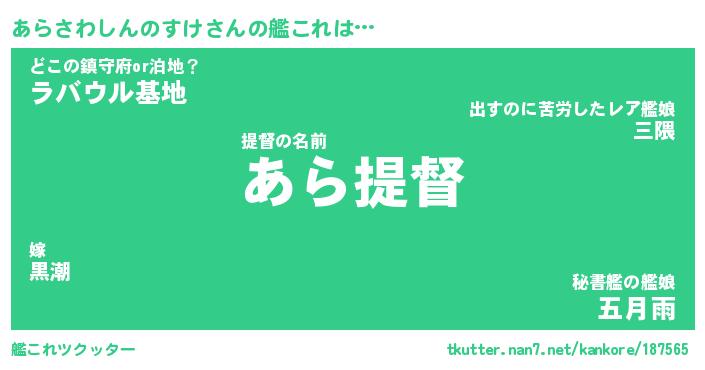 | 男性向けラノベタイトル風あだ名 | 『あらさわしんのすけの憂鬱』 |