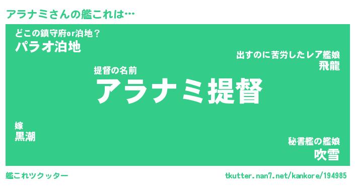 | 意味不明あだ名 | 『ペロリンアラナミ』『永久保存アラナミ』 |