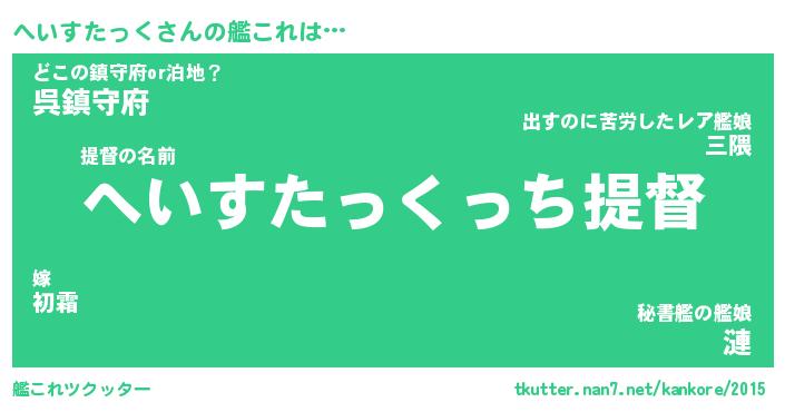 | 男性向けラノベタイトル風あだ名 | 『へいすたっくの憂鬱』 |
