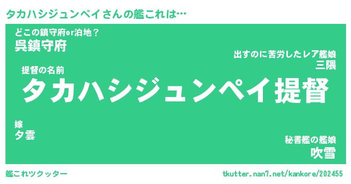 | 男性向けラノベタイトル風あだ名 | 『タカハシジュンペイの憂鬱』 |