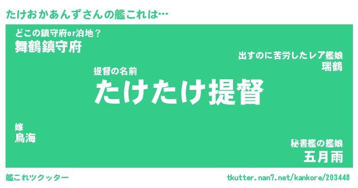 | 料理風あだ名 | 『節約★たけおかあんずと油揚げの玉子丼』 |