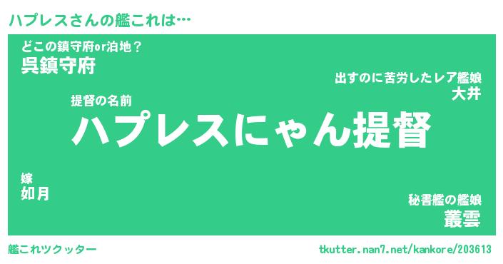 | ヘコむあだ名 | 『ハプにー』『なまこ酢』『ハプお』 |