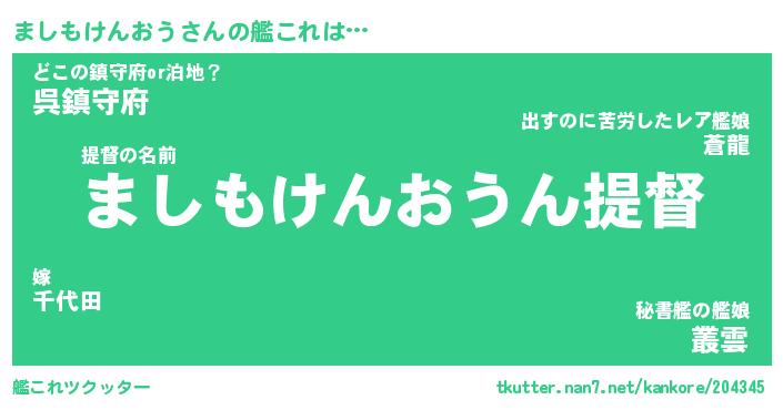 | 男性向けラノベタイトル風あだ名 | 『ましもけんおうの憂鬱』 |