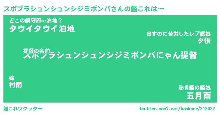 | 男性向けラノベタイトル風あだ名 | 『スポブラシュンシュンシジミボンバの憂鬱』 |
