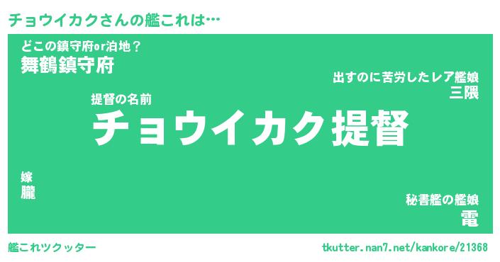 | 料理風あだ名 | 『節約★チョウイカクと油揚げの玉子丼』 |