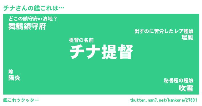 | ヘコむあだ名 | 『チナふぇ~』『なまこ酢』『チナお』 |