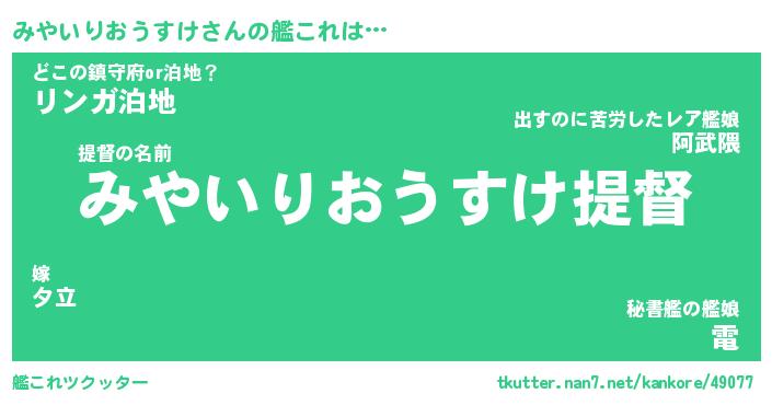 | 男性向けラノベタイトル風あだ名 | 『みやいりおうすけの憂鬱』 |