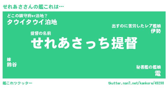 | 男性向けラノベタイトル風あだ名 | 『せれあさの憂鬱』 |