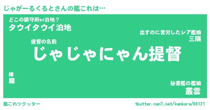 | ツイッター | じゃがーるくるとさんのツイッターID『dendenmushi_man』 |