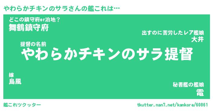 | 男性向けラノベタイトル風あだ名 | 『やわらかチキンのサラの憂鬱』 |