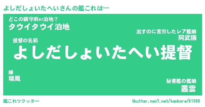 | ポケモン風あだ名 | 『ヨシチュウ』『ヨシダダネ』 |