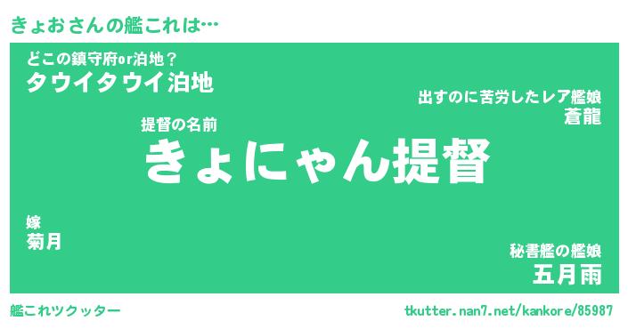 | 男性向けラノベタイトル風あだ名 | 『きょおの憂鬱』 |