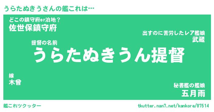 | 男性向けラノベタイトル風あだ名 | 『うらたぬきうの憂鬱』 |