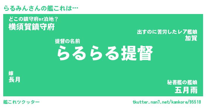 | ヘコむあだ名 | 『らるもー』『つくし』『らるぷりん』 |