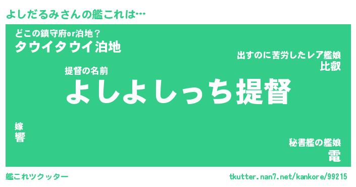 | 伝説のあだ名 | 『不死鳥のスナイパーよしだるみ』 |